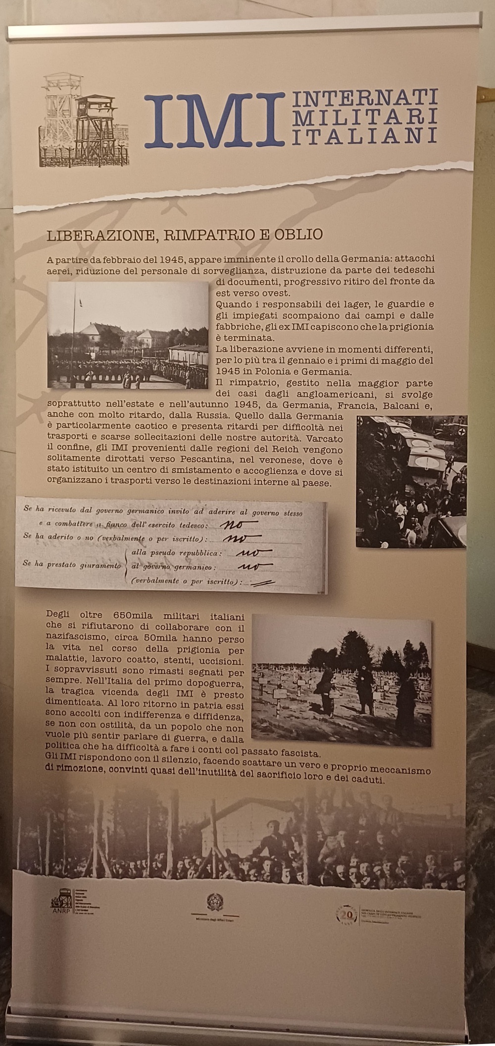 The exhibition was inaugurated following a conference opened by the Secretary General of the Ministry of Foreign Affairs and International Cooperation, Ambassador Riccardo Guariglia, and attended by representatives of the ANRP, the Ministry of Defence, and several university scholars, who explored the main historical and diplomatic aspects of the events, particularly the negotiations between the Third Reich and the Italian Social Republic concerning the status of the Italian Military Internees (IMI).