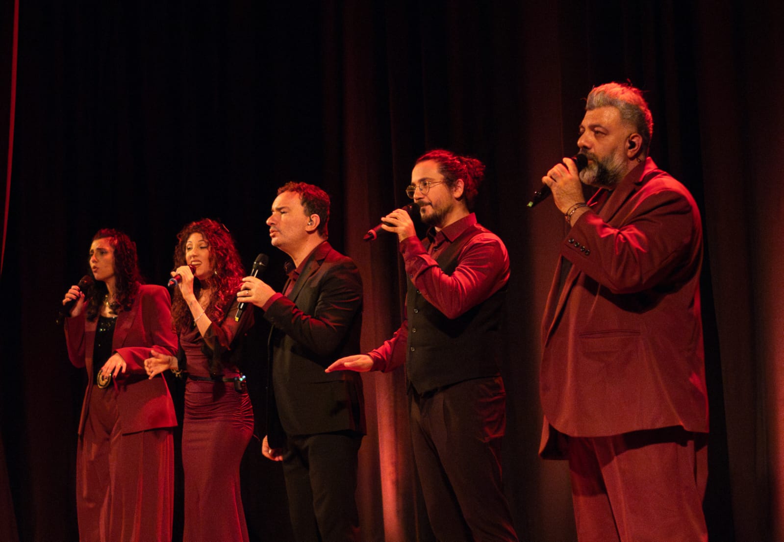 Mezzotono is a vocal group presenting an innovative musical-theatre performance, distinguished by a combination of humour and a cappella music.