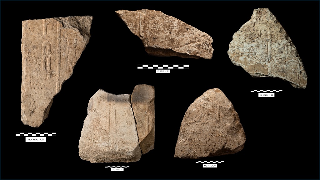The structures unearthed so far indicate a building of monumental dimensions: the investigated area exceeds 1,000 square meters and represents approximately half of the entire sanctuary. The temple had an original height of over 5.5 meters and is composed of a main colonnade entrance – of which traces of the floor and foundations, as well as remains of granite and limestone columns were found – and a secondary entrance, with a perfectly preserved quartzite doorway. The temple was also richly decorated, with blocks bearing hieroglyphic inscriptions with the name of pharaoh Nyuserre and references to religious festivals that were probably part of a ritual calendar displayed outside the building.
