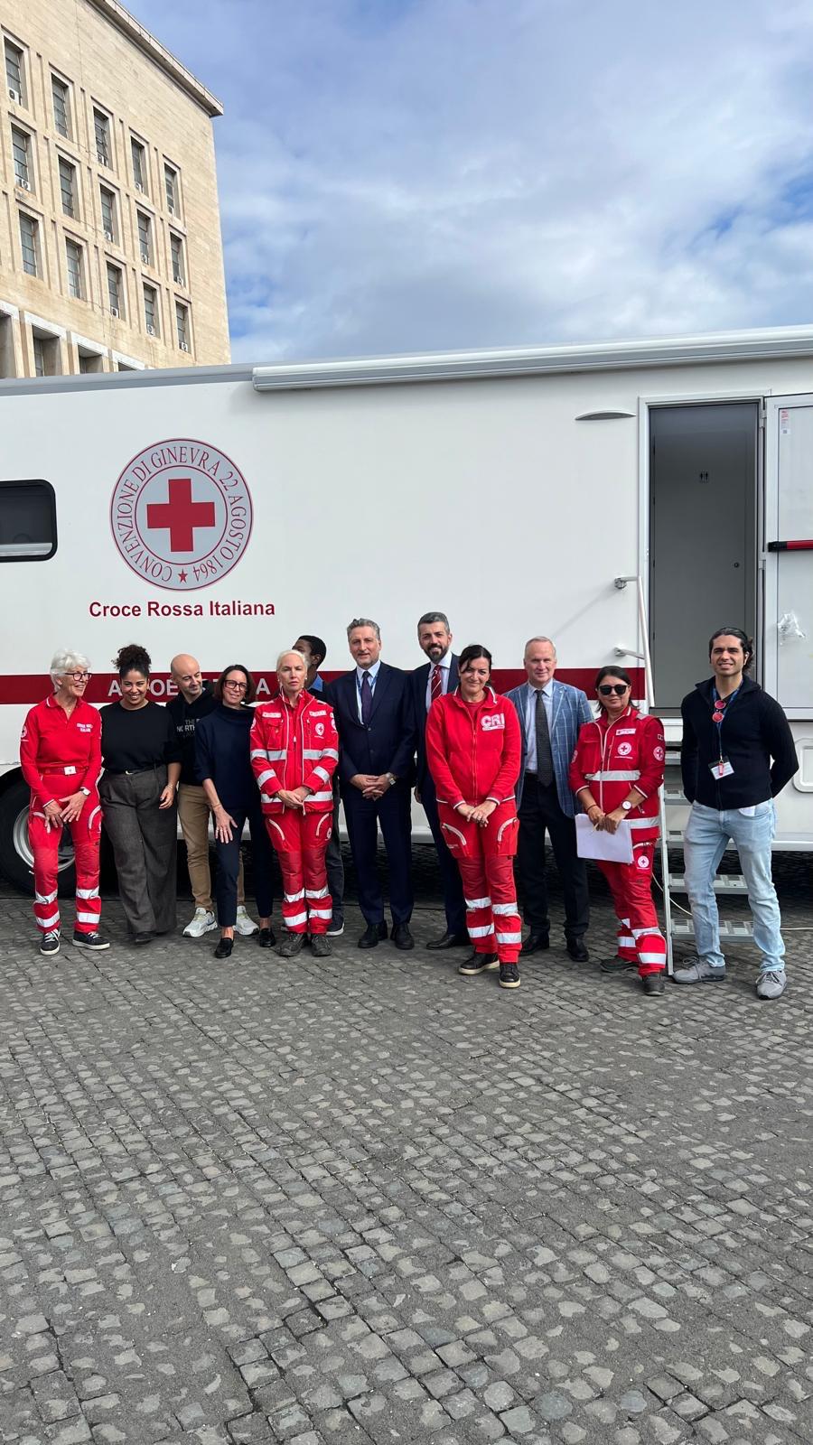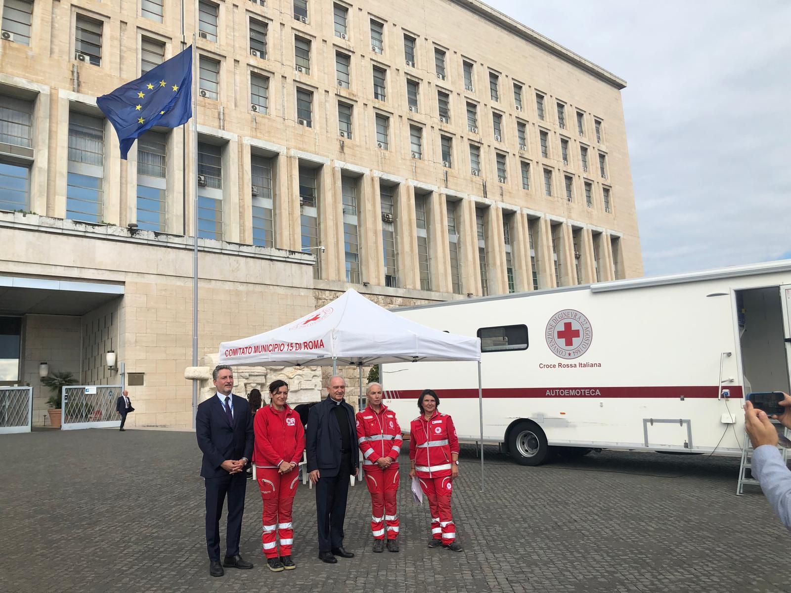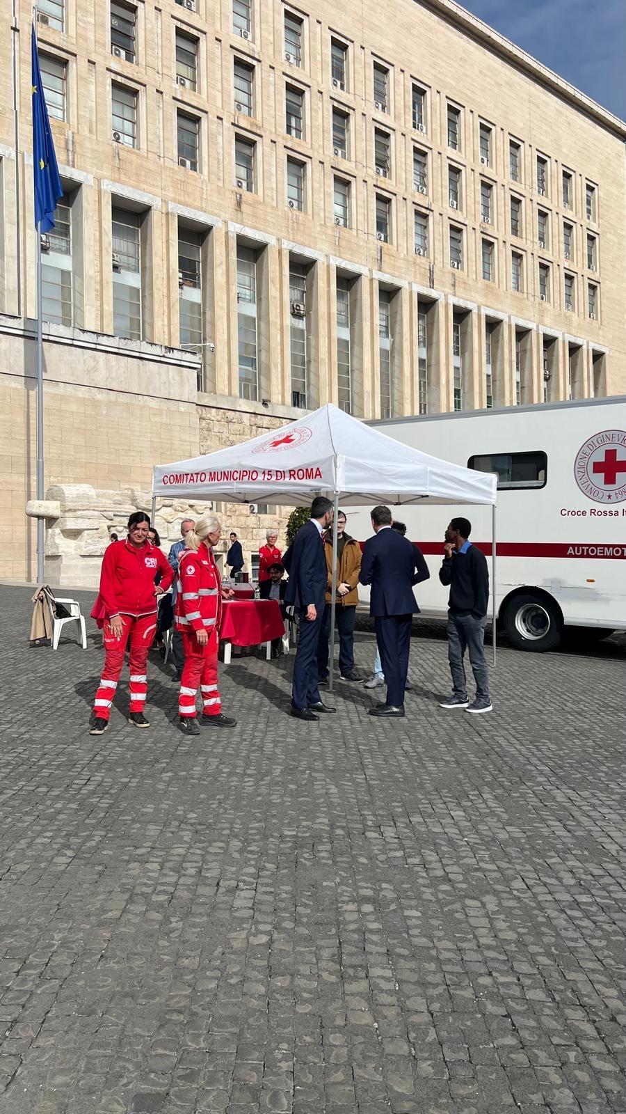 Today, Friday 31 October, a Blood Donation Day took place in the Piazzale della Farnesina, organised by the Ministry of Foreign Affairs and International Cooperation (MAECI) in collaboration with the Italian Red Cross Committee of Municipio XV, Rome, which provided a dedicated collection point with a mobile blood donation unit.