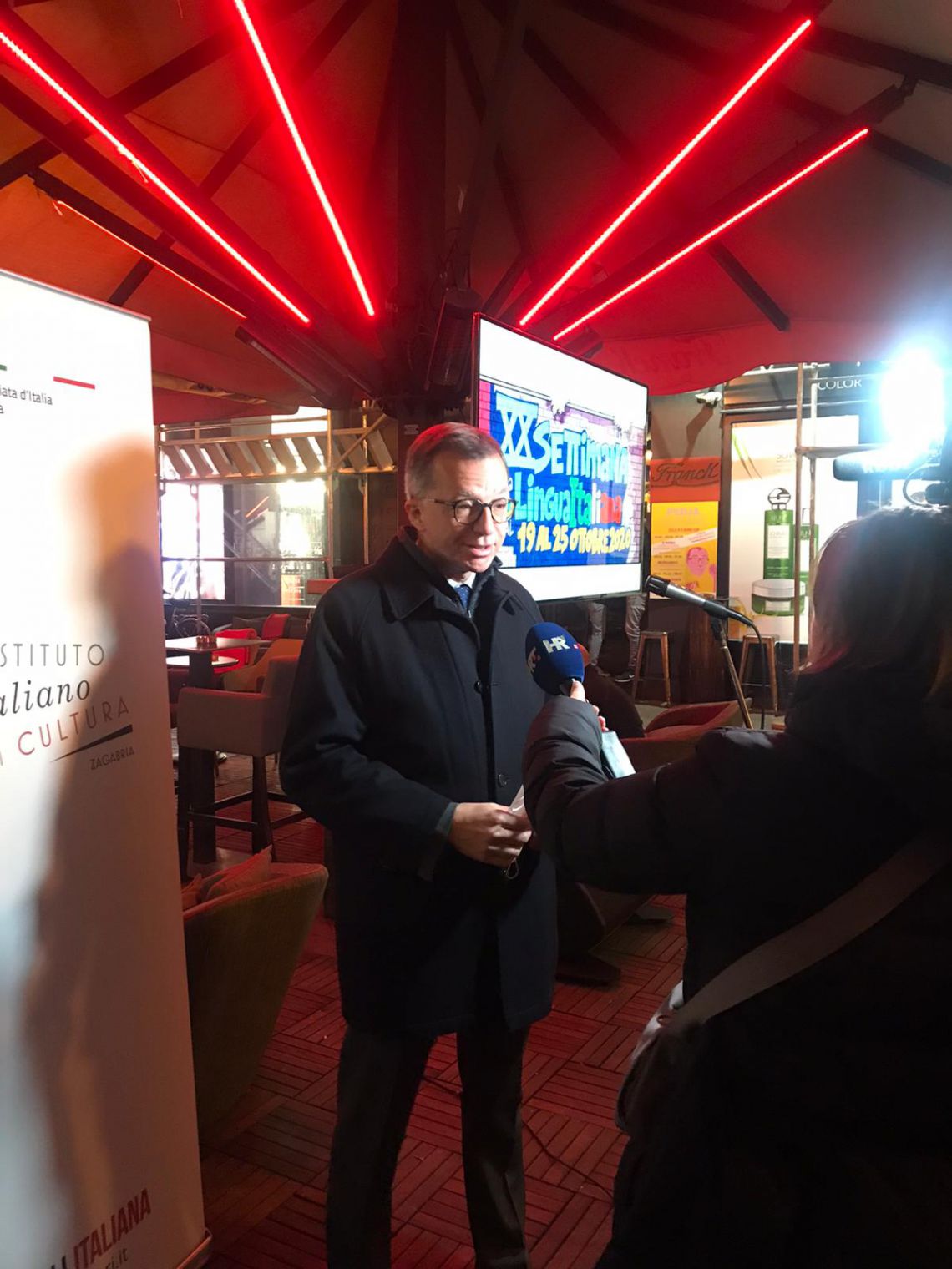 Alla cerimonia, organizzata nello stringente rispetto delle misure epidemiologiche e di prevenzione sanitaria locali, hanno partecipato rappresentanti del mondo culturale locale e della collettività italiana, esponenti dei media e cineoperatori della televisione nazionale HRT, oltre ai numerosi passanti che regolarmente affollano la piazza, vero e proprio centro culturale della capitala croata. In aggiunta alla presentazione del programma della Settimana da parte dell’Ambasciatore, è stato proiettato il video ufficiale della Settimana della Lingua, che continuerà ad essere trasmesso a flusso continuo nelle vetrine dell’Istituto di Cultura per tutta la durata della rassegna.