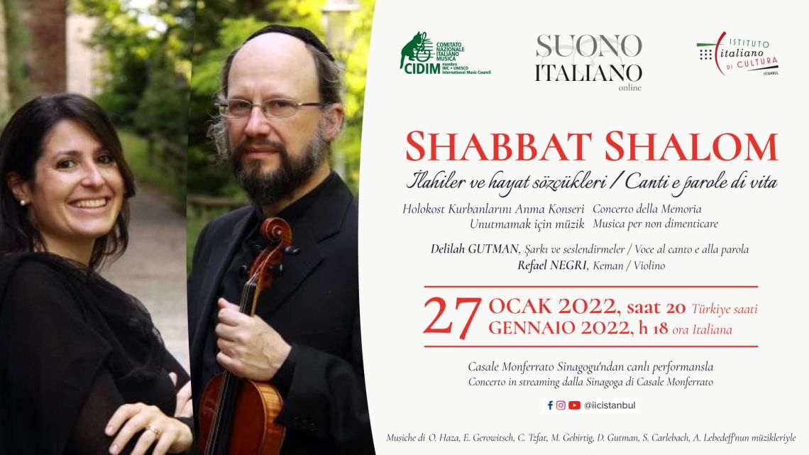 “Shabbat Shalom”, an online concert of the duo Delilah Gutman and Refael Negri, will be held today, 27 January, International Holocaust Remembrance Day, following an initiative of the Italian Cultural Institute in Istanbul and CIDIM (Italian National Committee of Music).