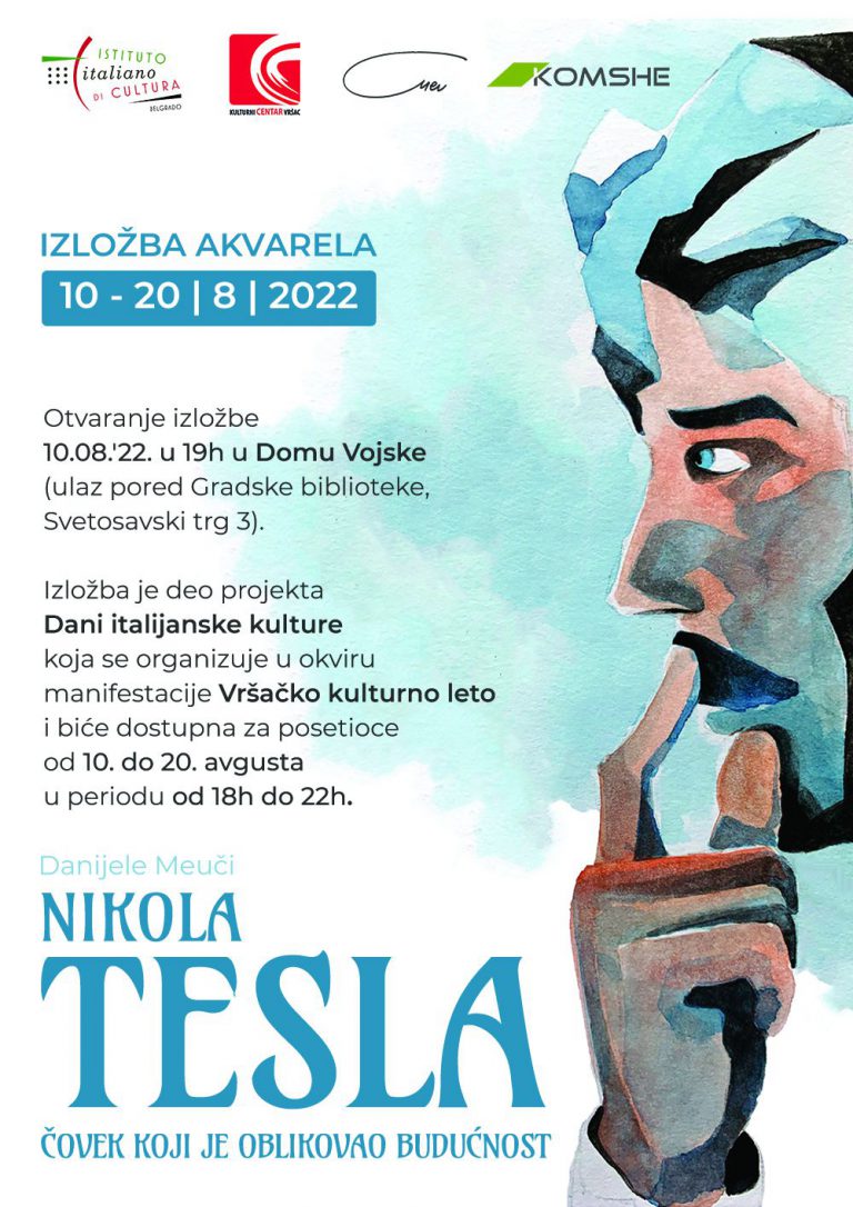 The Cultural Centre in Vršac , in collaboration with the Italian Cultural Institute of Belgrade, presents the “Days of Italian Culture”, to be held from 10 to 20 August as part of the Vršac Cultural Summer event. Visitors will get to see the exhibition “Nikola Tesla, the man who defined the future”, as well as a review of contemporary Italian cinema.