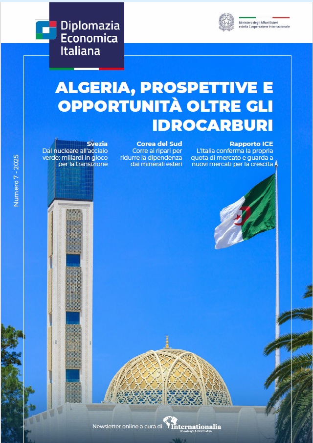 La newsletter online Diplomazia Economica Italiana, è il mensile di informazione sull’attività della Diplomazia Economica. Realizzata da Internationalia in coordinamento con la Direzione Generale per la Promozione del Sistema Paese – Ufficio Internazionalizzazione – del Ministero degli Affari Esteri e della Cooperazione Internazionale.