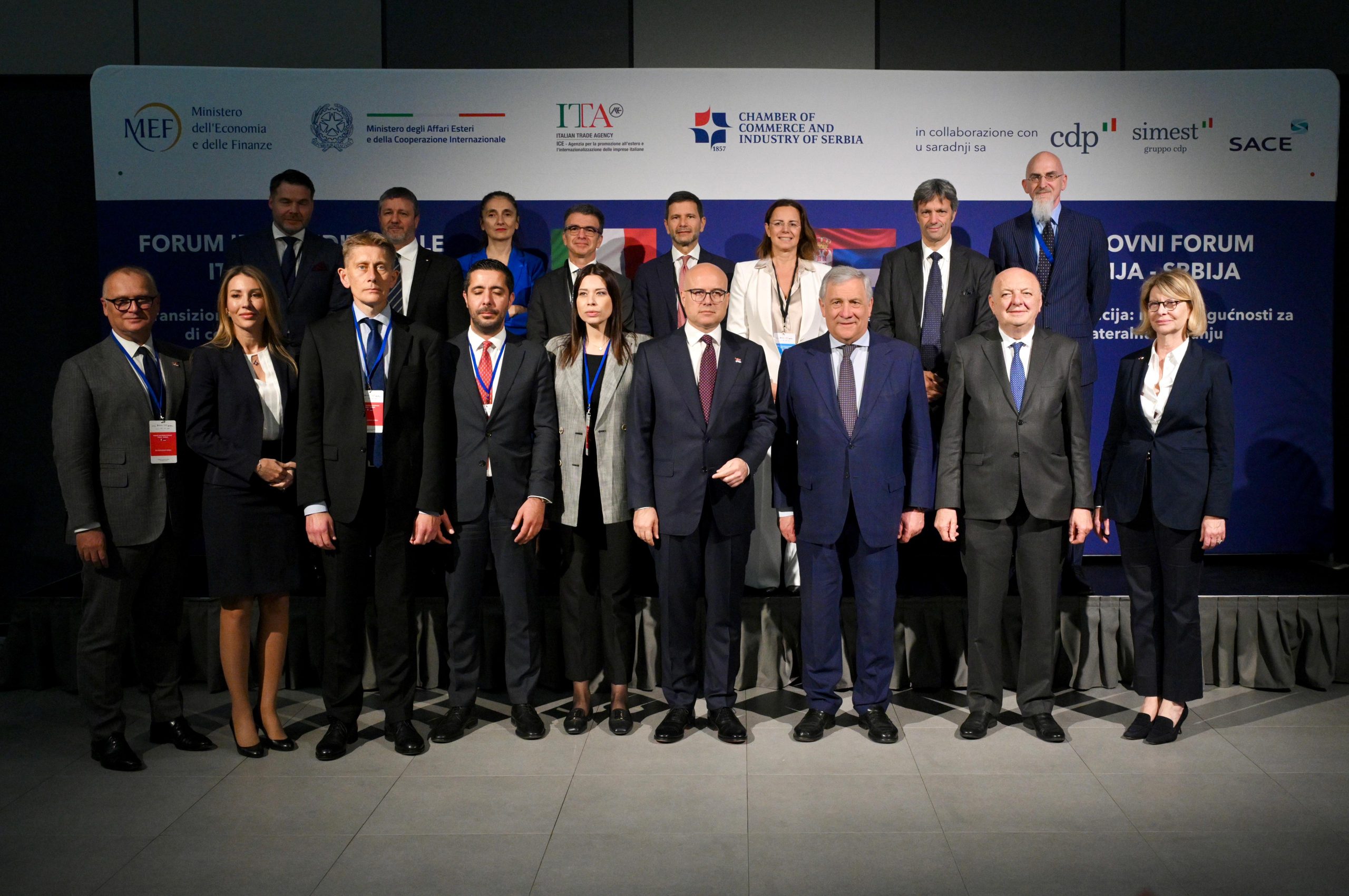 Il Vice Presidente del Consiglio dei Ministri e Ministro degli Affari Esteri e della Cooperazione Internazionale, On. Antonio Tajani, apre la sessione plenaria del Forum Imprenditoriale Italia-Serbia dedicato al tema “Transizione verde: nuove opportunità per la collaborazione bilaterale” insieme al Primo Ministro della Repubblica di Serbia, Miloš Vučević.