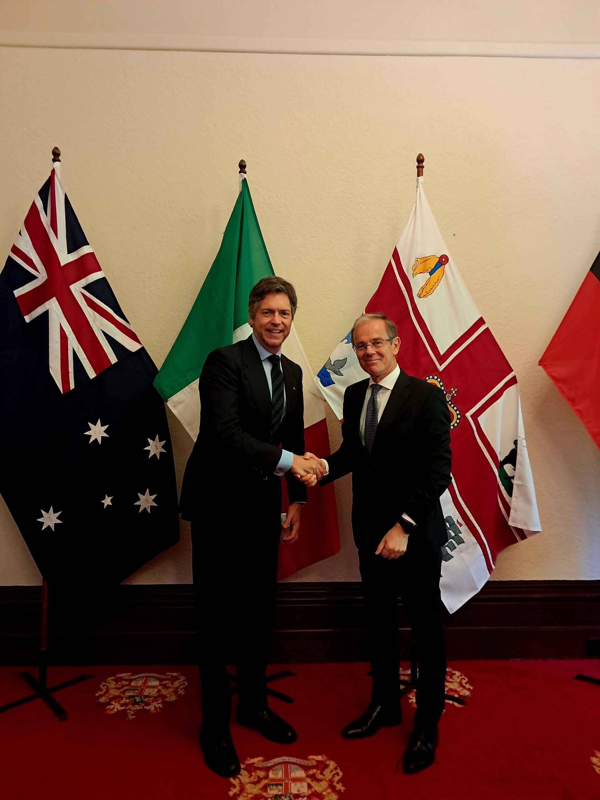 L’Ambasciatore ha anche sottolineato la presenza di numerose aziende italiane a Melbourne, tra cui Webuild, Leonardo ed Enel Green Power, attive in settori strategici come difesa, infrastrutture, energia, sanità e agroalimentare, evidenziando le potenzialità di crescita degli scambi commerciali e degli investimenti tra Italia e Victoria