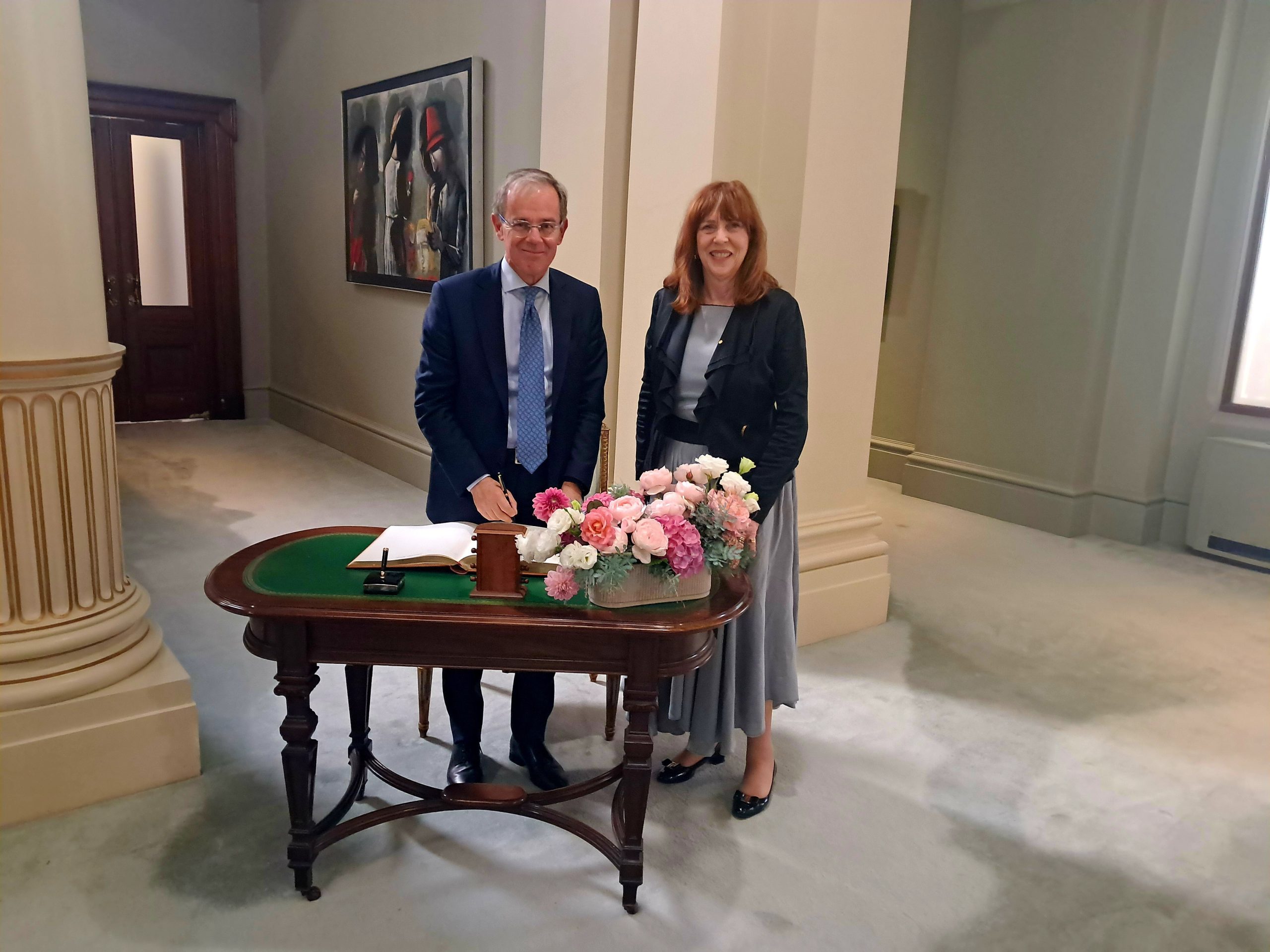 La visita è proseguita al Parlamento del Victoria, dove l’Ambasciatore è stato accolto dalla Presidente dell’Assemblea Legislativa Maree Edwards e dalle Co-Presidenti del Gruppo parlamentare di amicizia con l’Italia Daniela De Martino e Jade Benham, a conferma del ruolo della diplomazia parlamentare nelle relazioni bilaterali tra Italia e Australia. L’Ambasciatore ha inoltre incontrato il Sindaco di Melbourne, Nicholas Reece, per discutere dello stato di avanzamento dell’accordo di gemellaggio con la città di Milano.