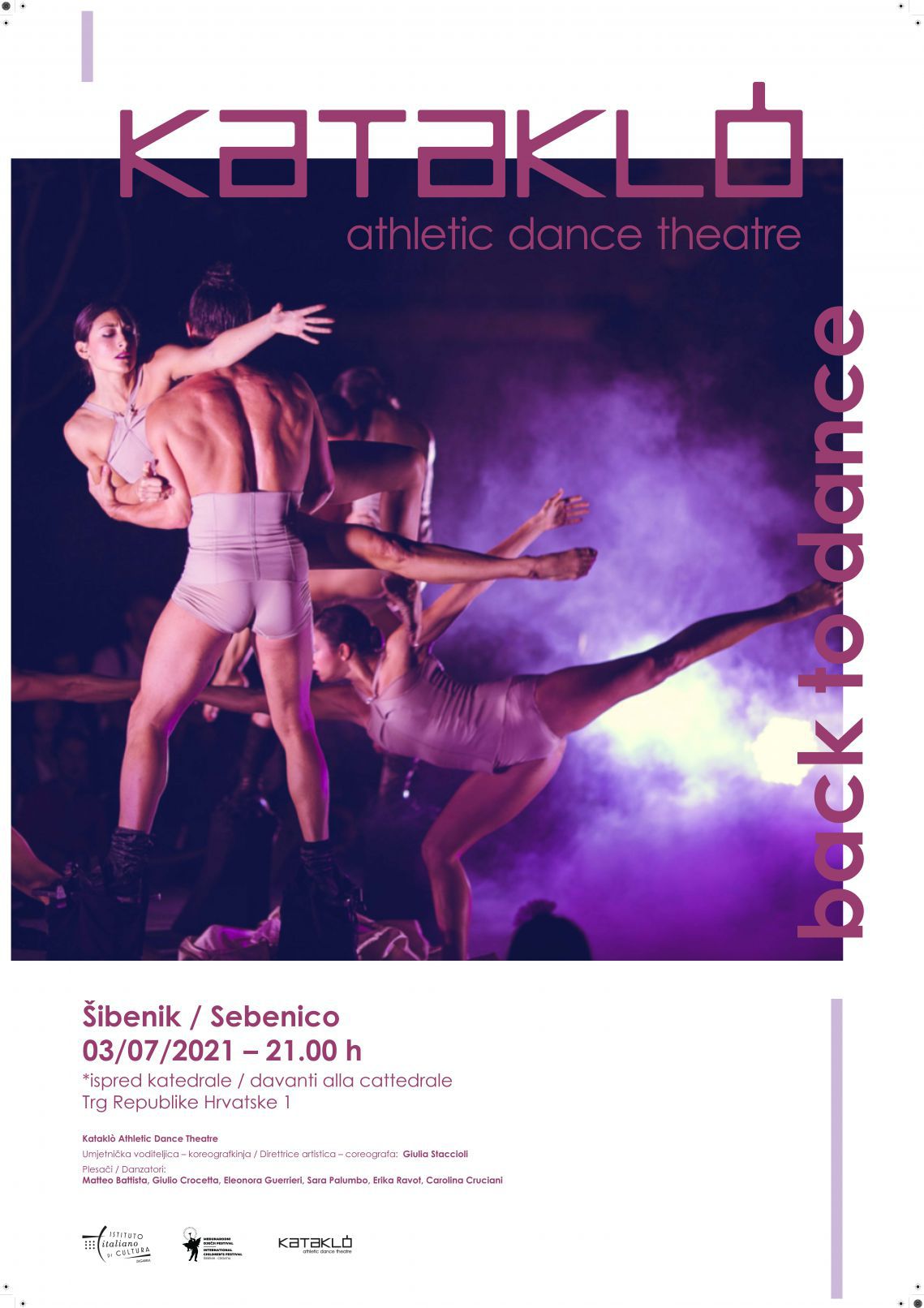 Nell’ambito dell’International Children’s Festival di Zagabria, l’Istituto Italiano di Cultura propone, il 3 luglio davanti alla cattedrale di Sebenico e il 4 luglio nel teatro di Zagabria, ‘Back to Dance’. Lo spettacolo segna il ritorno sul palcoscenico degli straordinari danzatori di Kataklò Athletic Theatre, la compagnia italiana di danza acrobatica fondata nel 1996 il cui nome, Kataklò, viene dal greco antico e significa “io ballo piegandomi e contorcendomi”.
