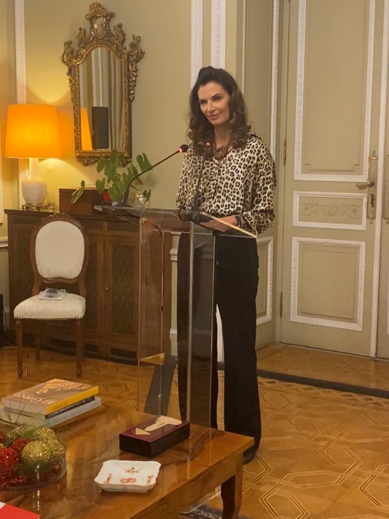 Al termine della presentazione, il Direttore del Museo del Filellenismo di Atene, Costantinos Veletzas, ha consegnato all’Ambasciatrice Falcinelli una medaglia commemorativa raffigurante il più conosciuto tra i filelleni italiani, Santorre di Santarosa.