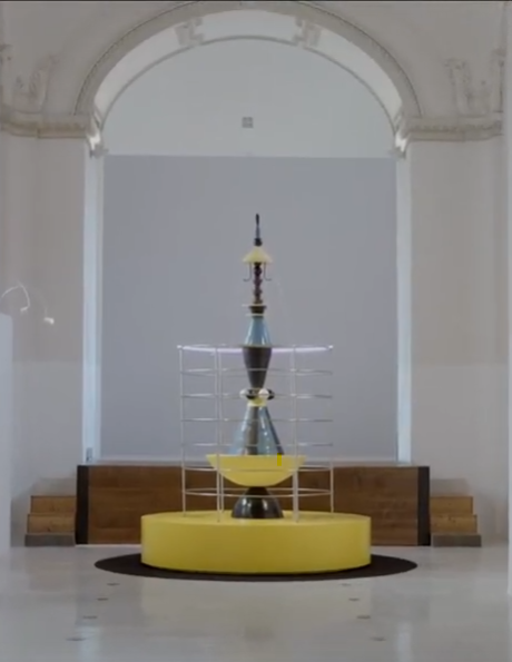 Grazie a un prestito temporaneo del Centro per l’Arte Contemporanea Luigi Pecci di Prato, i visitatori possono ammirare la scultura ispirata da una miniatura che rappresenta “Il Giardino dell’Amore o Hortus con fontana della giovinezza” contenuta nel manoscritto “De Sphaera” (fine del XV secolo), uno dei più affascinanti volumi astrologici illustrati del Rinascimento. Del disegno originale l’opera conserva lo schema compositivo che nella scultura appare schematizzato e fuori scala, assumendo le sembianze di una grande antenna parabolica, o una sorta di “obelisco alieno”, che alimenta una riflessione sul mito universale del Paradiso e sul suo significato in un mondo in cui la natura è soggetta ad un progressivo saccheggio. Il moto perpetuo dell’acqua nella fontana simboleggia  una possibile palingenesi. A realizzare l’opera è stato l’artista pugliese Agostino Iacurci, uno dei vincitori della sezione under 35 del concorso “Cantica 21 Italian Contemporary Art Everywhere” bandito dalla Direzione Generale per la Promozione del Sistema Paese del Ministero degli Affari Esteri con l’obiettivo di promuovere la ricerca e la pratica nel campo delle arti visive contemporanee.