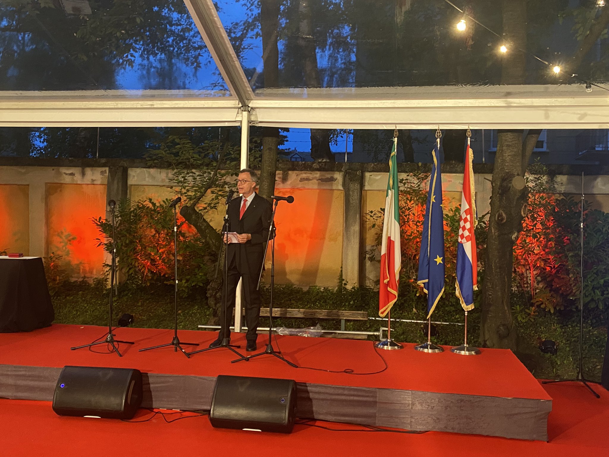 L’Ambasciata d’Italia a Zagabria ha celebrato il 76esimo anniversario della Repubblica Italiana nel cortile della residenza con un ricco programma di eventi, simbolo dei molteplici rapporti diplomatici, economici, culturali e di amicizia tra Italia e Croazia.