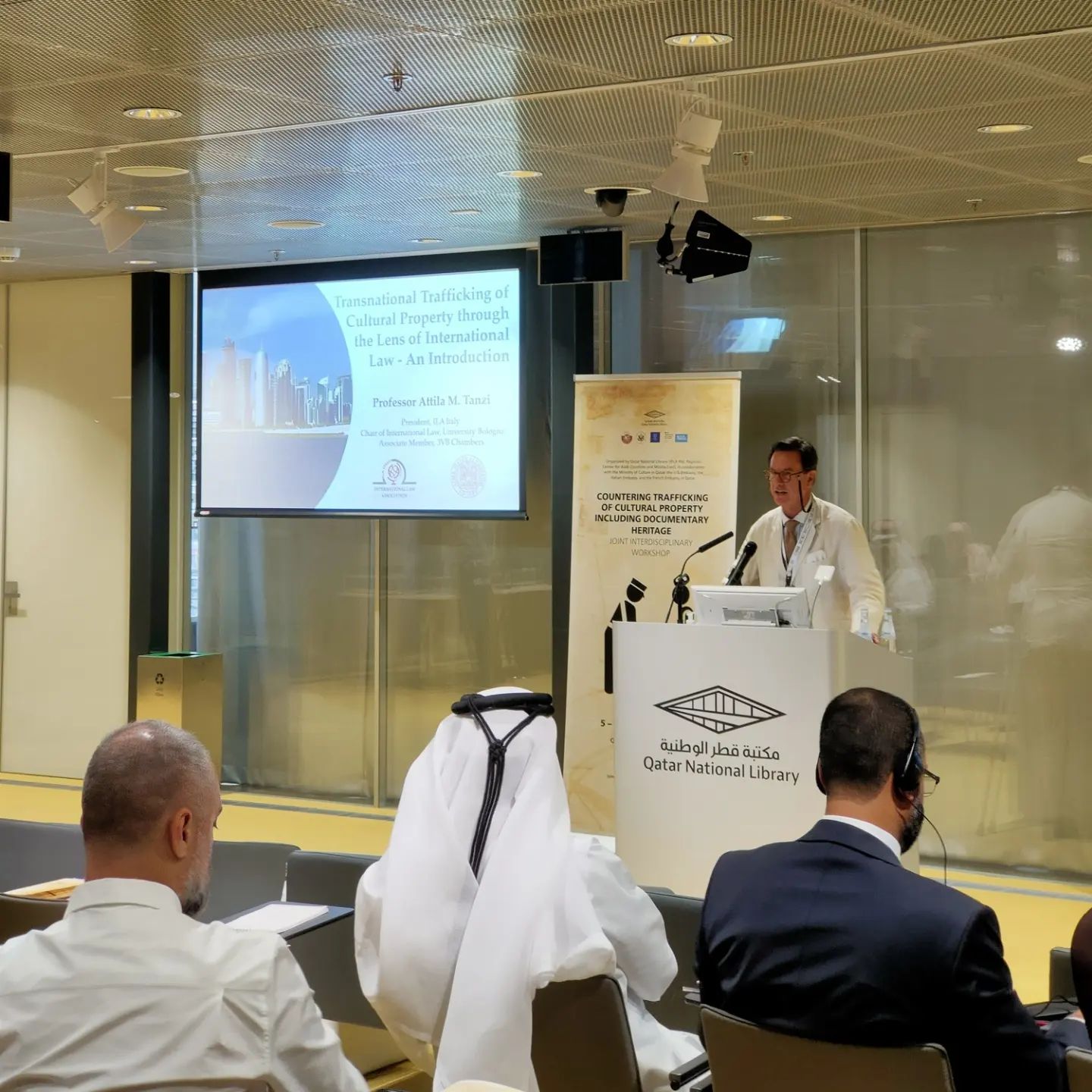 Alla conferenza sono poi intervenuti, per l’Italia, anche Attila M. Tanzi, Ordinario di diritto internazionale dell’Università di Bologna e consulente giuridico del Ministero degli Esteri e il Maresciallo dei Carabinieri Antonella Spagnuolo del Nucleo Tutela Patrimonio Culturale di Roma, che ha illustrato più nel dettaglio l’impegno dell’Arma, del Ministero della Cultura e delle Forze Armate e di polizia italiane nel contrasto al traffico di opere d’arte e per il rimpatrio di oggetti illecitamente sottratti. Infine, in occasione del workshop, grazie all’impegno del professor Tanzi, è stata avviata una più stretta collaborazione tra il College of Law della Qatar University e il Dipartimento di Giurisprudenza dell’Università di Bologna.
