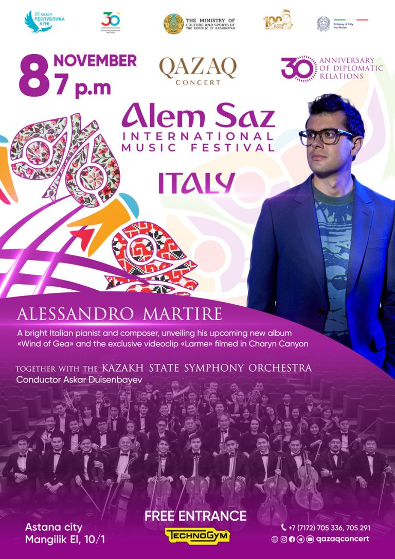 “Torno in Kazakistan, dove ho trovato un pubblico giovane, ma molto competente, che ama tantissimo l’Italia”, ha commentato Alessandro Martire. “Sono felice di lanciare qui il mio nuovo album, Wind of Gea, ispirato dal vento, protagonista della straordinaria natura di questo Paese. Un contributo personale all’amicizia fra i nostri popoli e alla promozione della cultura italiana in Kazakistan”.